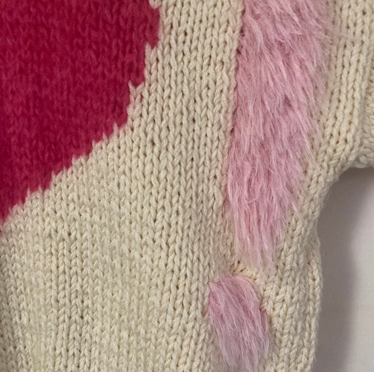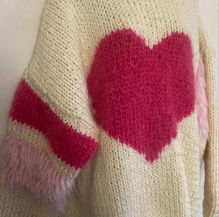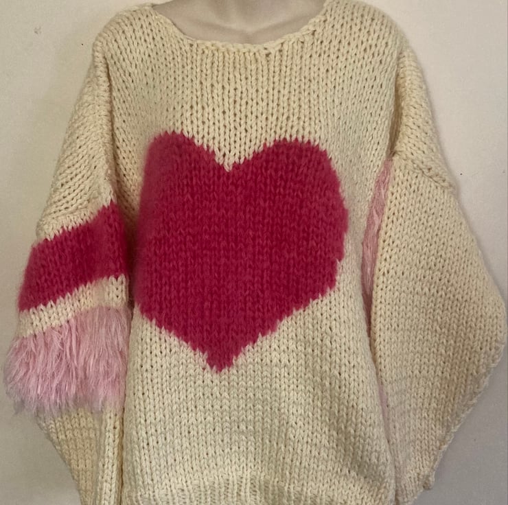 Super chunky wool/acrylic blend in a cream shade with contrasting pink heart.