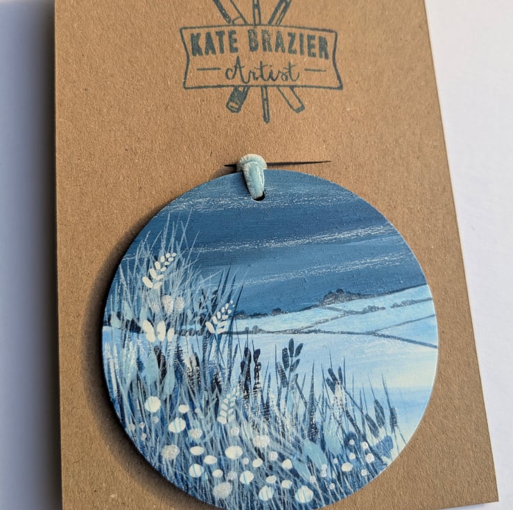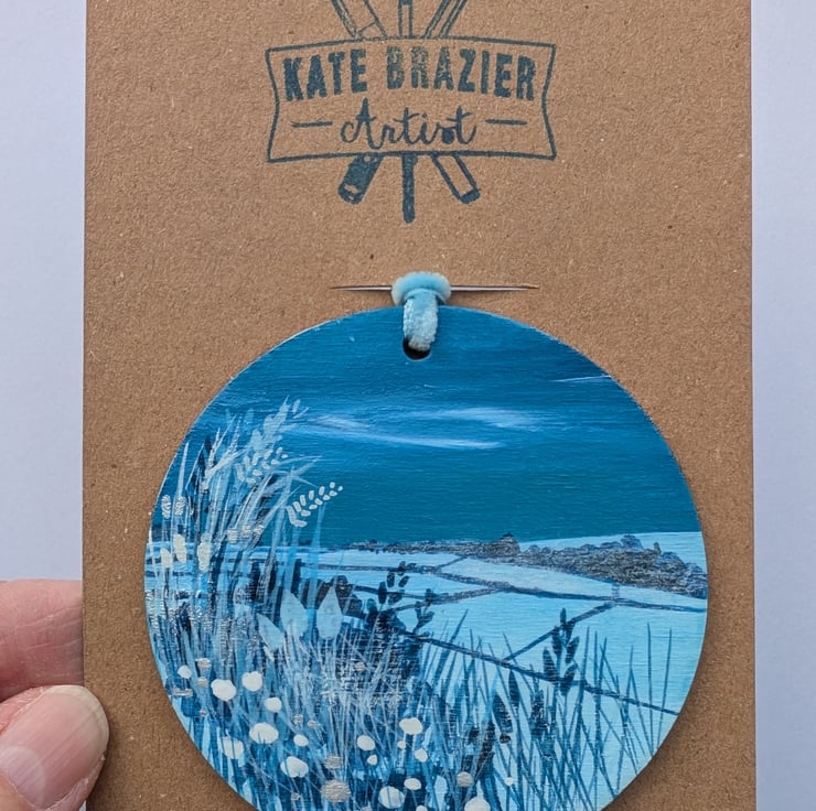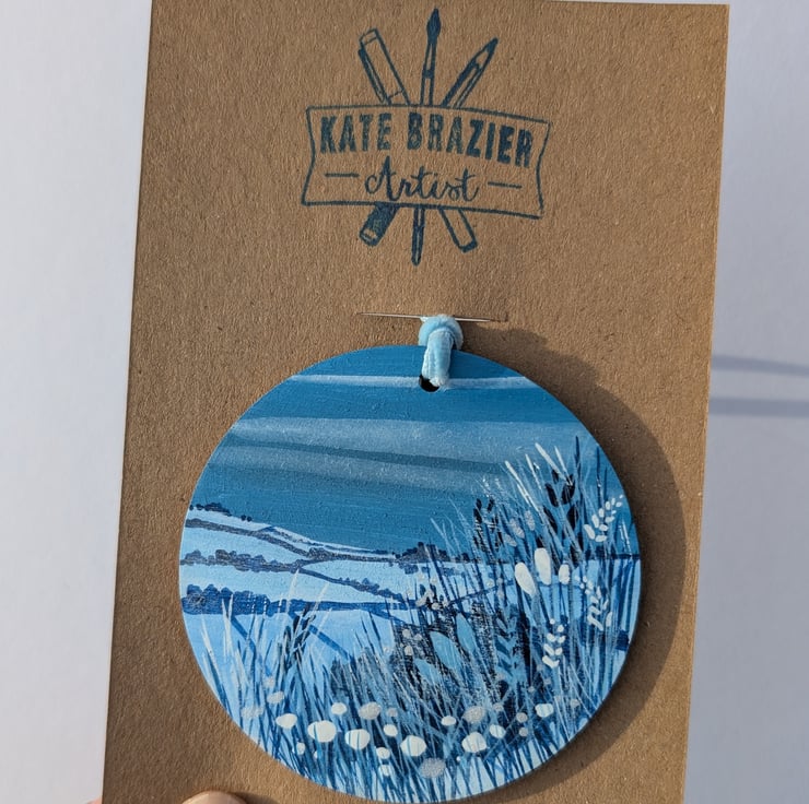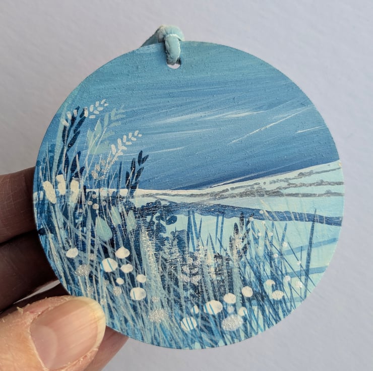 Unique Hand Painted Wooden Decorations. FROSTY BLUES. New colour