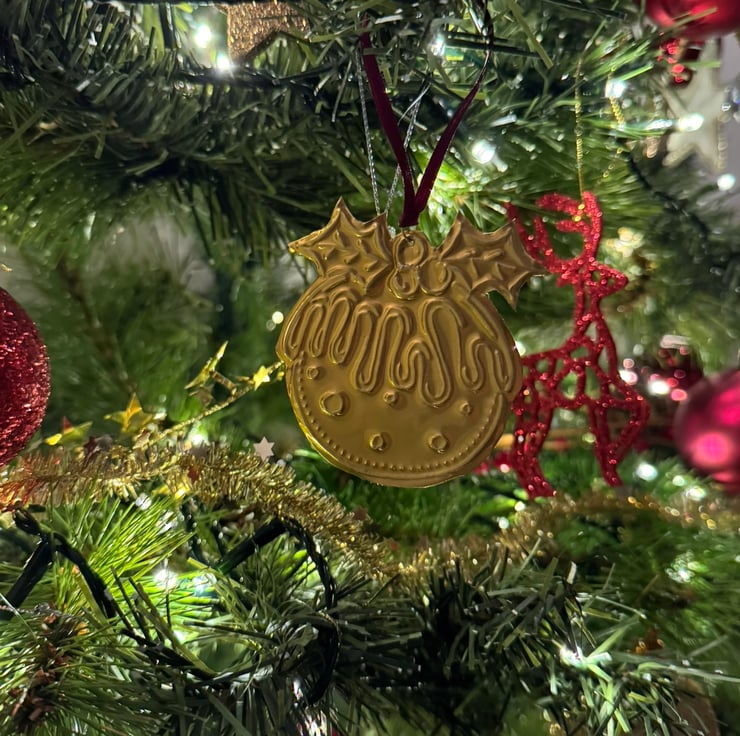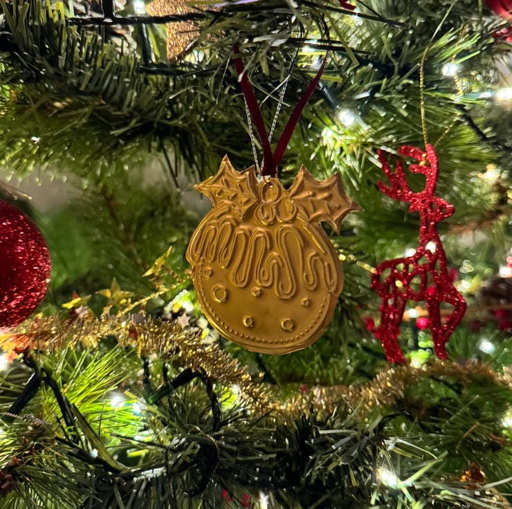 This cute, little, Christmas Pudding hanging decoration is made from lightweight tin.