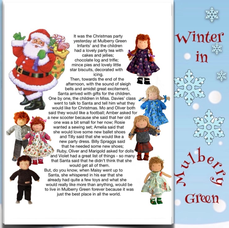 There are other children in Maisy’s class at school - Violet, Billy with his pet rabbit, Amber, Tilly, Rosie and her kittens, Amelia, Ruby, Marigold, Bobby with Max the dog, and the twins Oliver and Olivia, who have a puppy called Oscar. The dolls are all 26cm tall and baby Daisy is 16cm. Maisy and Mo love nothing more than having adventures with their friends. You can read about their adventures on my Facebook and Instagram pages - Maisy Muffin Rag Dolls and on my Mulberry Green Pinterest boards.
