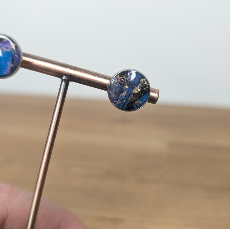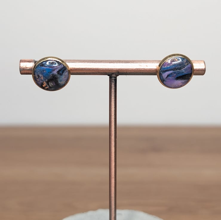 Hand made polymer clay earrings with an abstract pattern coated in resin. Fixing is hypo allergenic. Please see all photos for close up detail. All products handmade therefore there may be minor imperfections. Each pair sold as seen, message for more info