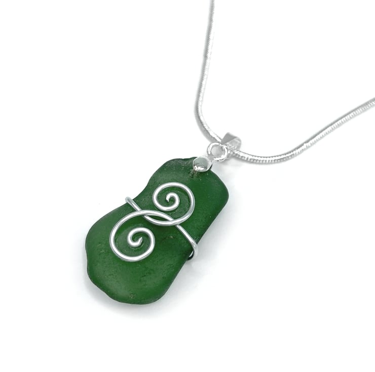 The necklace is wire-wrapped with silver-plated wire and features a two interlocking spirals - this would make a perfect gift to celebrate a special relationship - a best friend, mother & daughter or your significant other! The sea glass is approximately 2.5cm. The necklace comes with a silver-plated snake chain with an extender on it which can be worn between 16-18 inches.