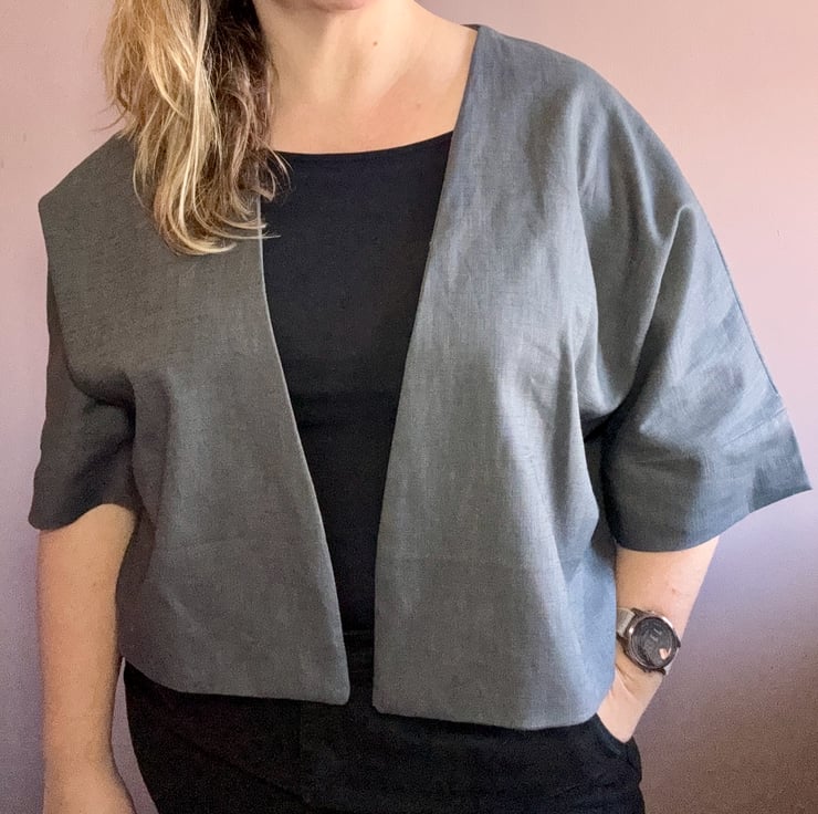 The outer is ramie/cotton mix, a strong and breathable nettle-linen fibre. Cut with roomy kimono sleeves and a relaxed, unstructured shape, this jacket is designed to be an easy, throw-on layer.