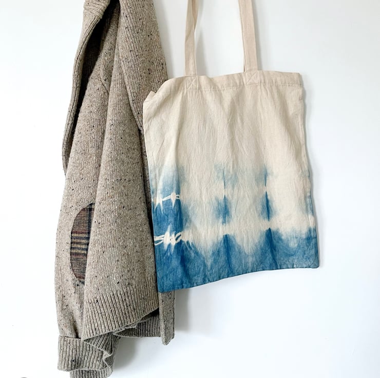 This tote bag is dyed with natural indigo using traditional hand-dipping techniques. Because indigo bonds strongly with natural fibres, it is one of the most colourfast and lightfast natural dyes in the world—making it perfect for pieces that live in daily life.