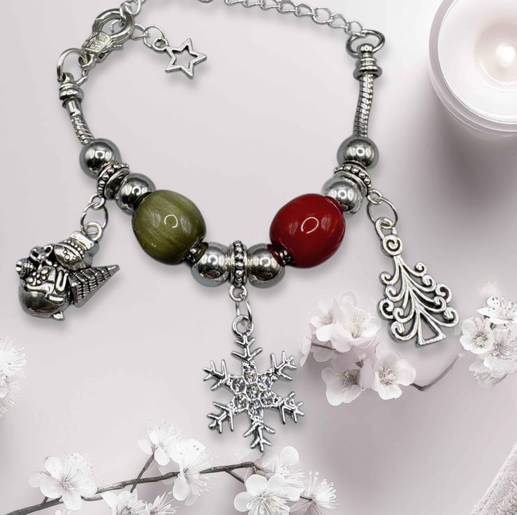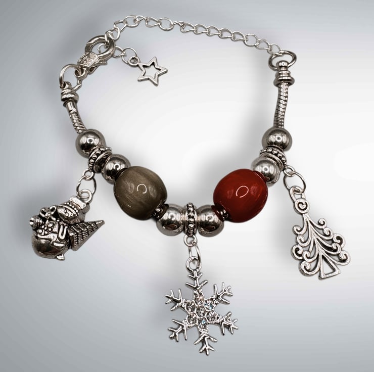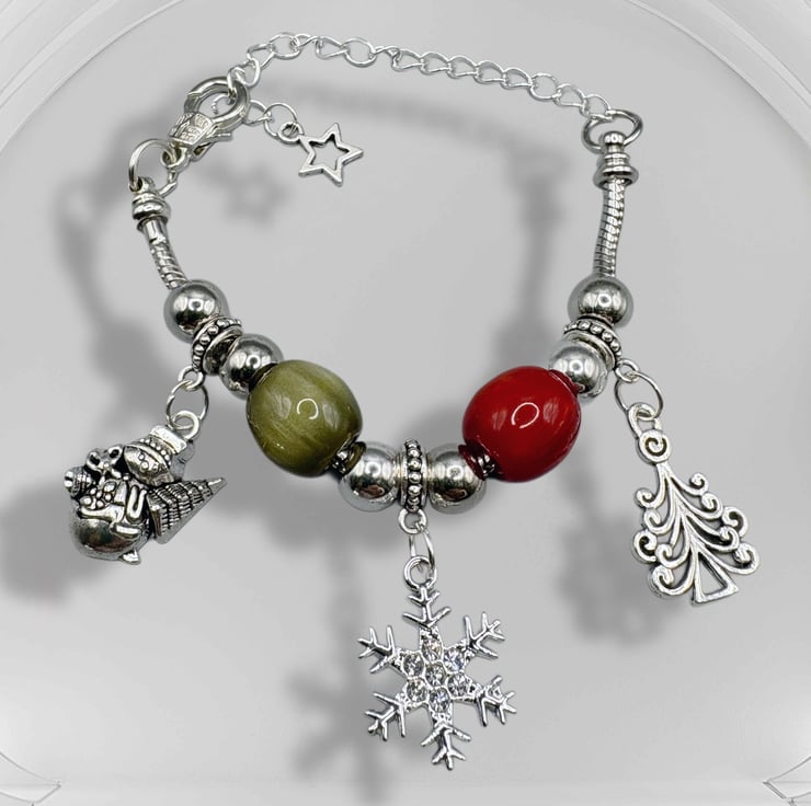 A very versatile bracelet as the charms and beads can be taken off after the festive season is over, by unscrewing one end and new charms can easily be added.