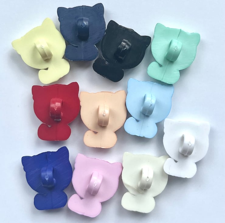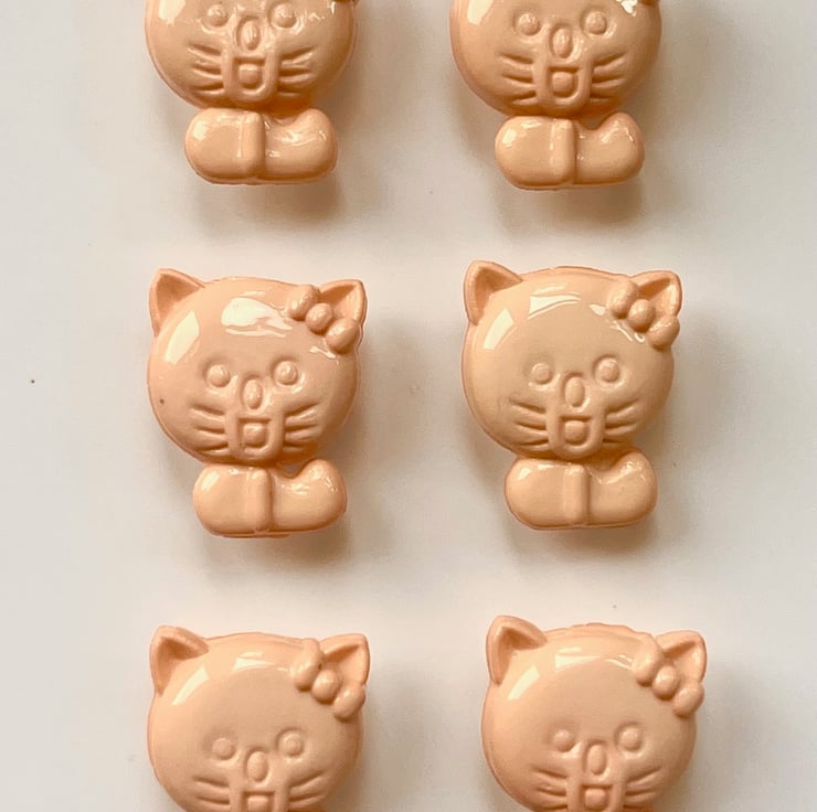 These Packs of 6 Cat Shaped Buttons are Peach in colour and are 15mm tall. Each Shank Back Button is perfect for your Sewing, Knitting and Crafting Makes - especially for your young-at-heart creations!