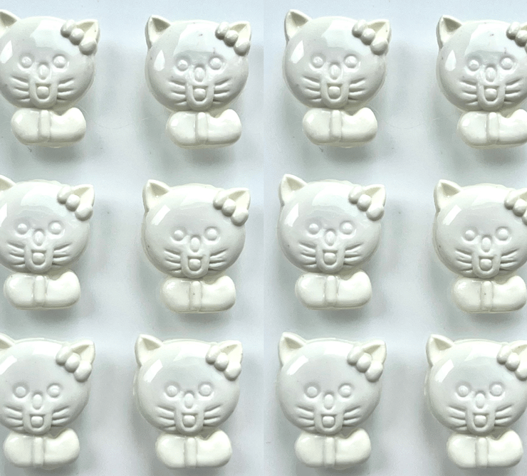 These Packs of 12 Cat Shaped Buttons are Cream in colour and are 15mm tall.