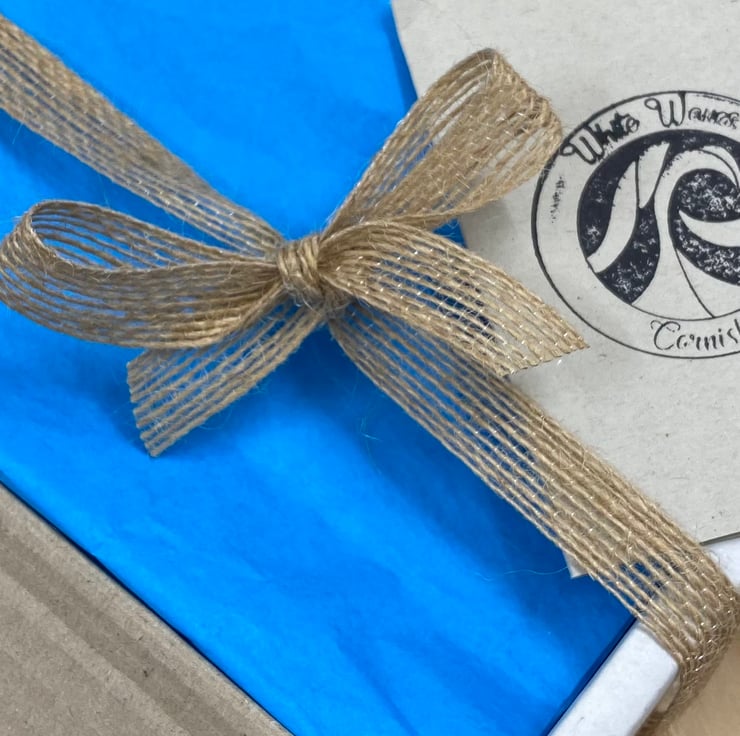 The purchased items will be packaged in a white cardboard box, lined with aqua blue tissue paper and tied with a ribbon inside the box (ribbon may vary from that shown, but will always be plastic free), supplied with a gift card and envelope. I can write in the card for you, or it can be left blank for you to personalise! The box will be wrapped in Kraft paper for postage, so the outer wrapping with the postal label can be removed prior to giving the gift.