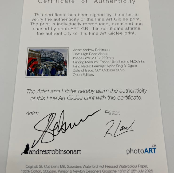 Titled ‘High Road Abode’ this is a unique Tottenham framed fine art print direct from myself the artist. My artworks are a celebration of the match day experience and of stadium architecture.