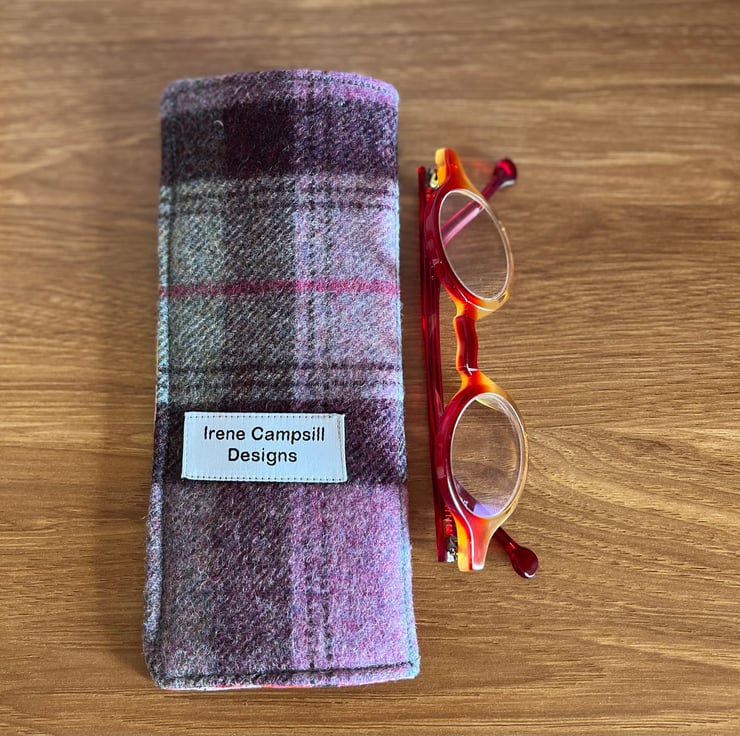 As the majority of my textiles are repurposed or upcycled, I source them as and when I come across them on my travels, therefore I’m not always sure of the exact fibre content. However in this case the outer is wool as it came from a curtain/upholstery swatch book of rich wool tartans made in the UK which were just the perfect size for my glasses cases.