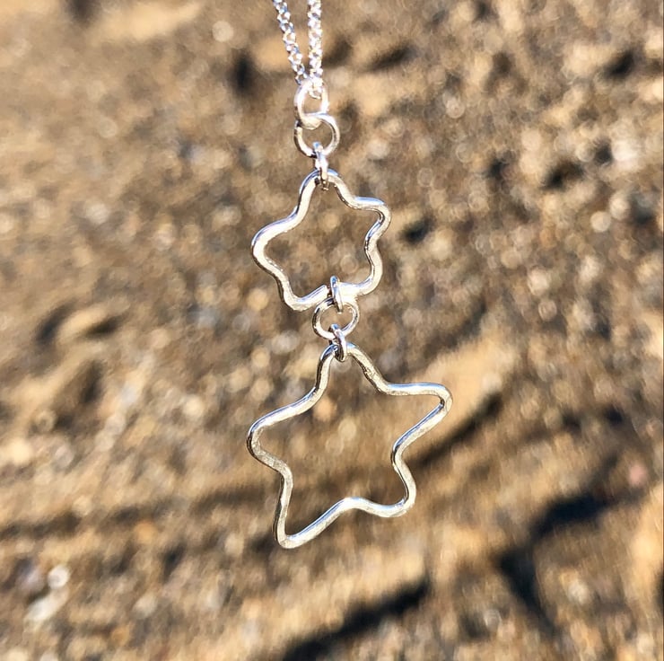 Simple Sterling Silver Double Starfish Pendant - 1267