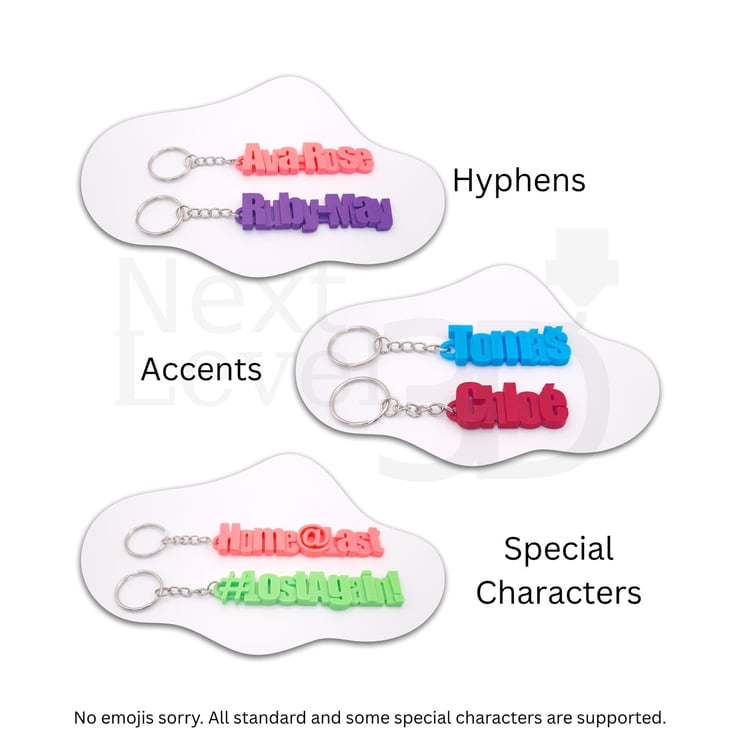 Each one is 3D made to order and personalised with your chosen name and colour. They re ideal as small personalised gifts, name tags, or everyday accessories for bags, keys, or backpacks.