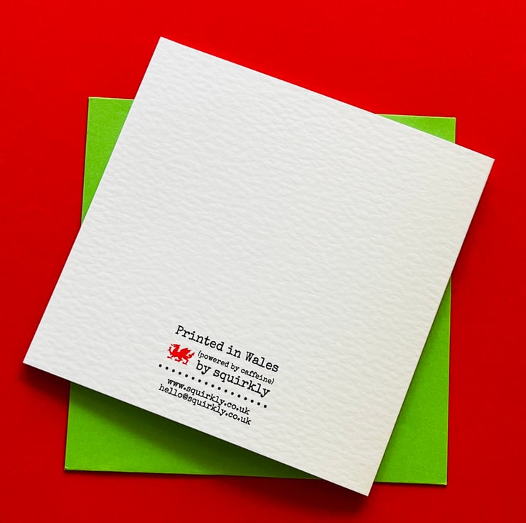 . One awesome square card (approx 120mm square when folded), blank inside for your own choice of words.