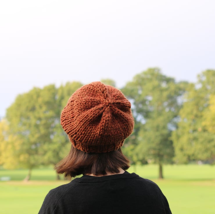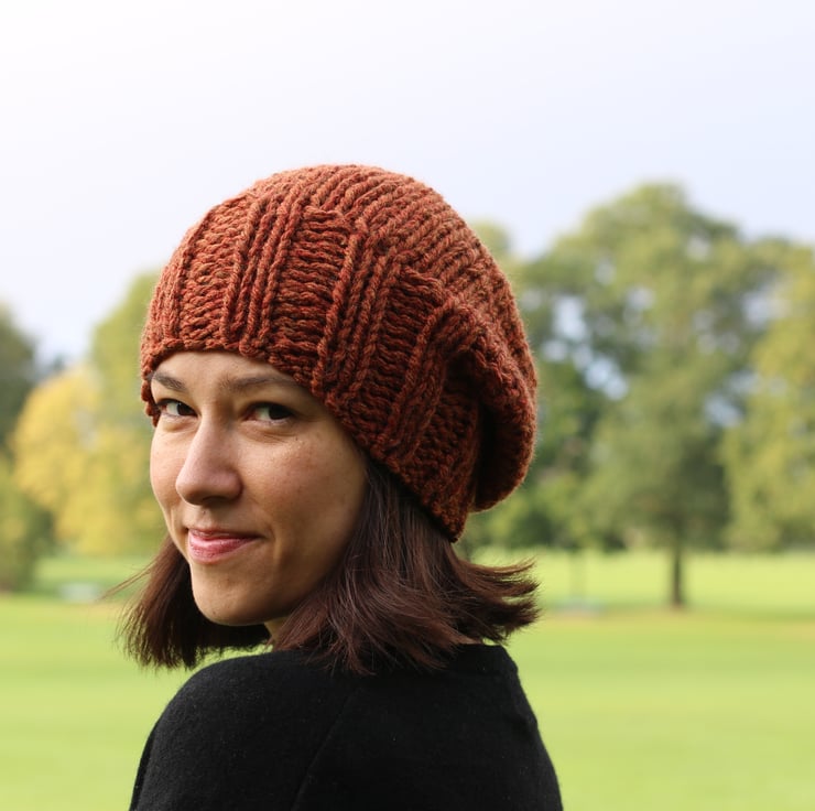 Hand Knitted Slouchy Beanie, Seamless Chunky Winter Hat Old Copper