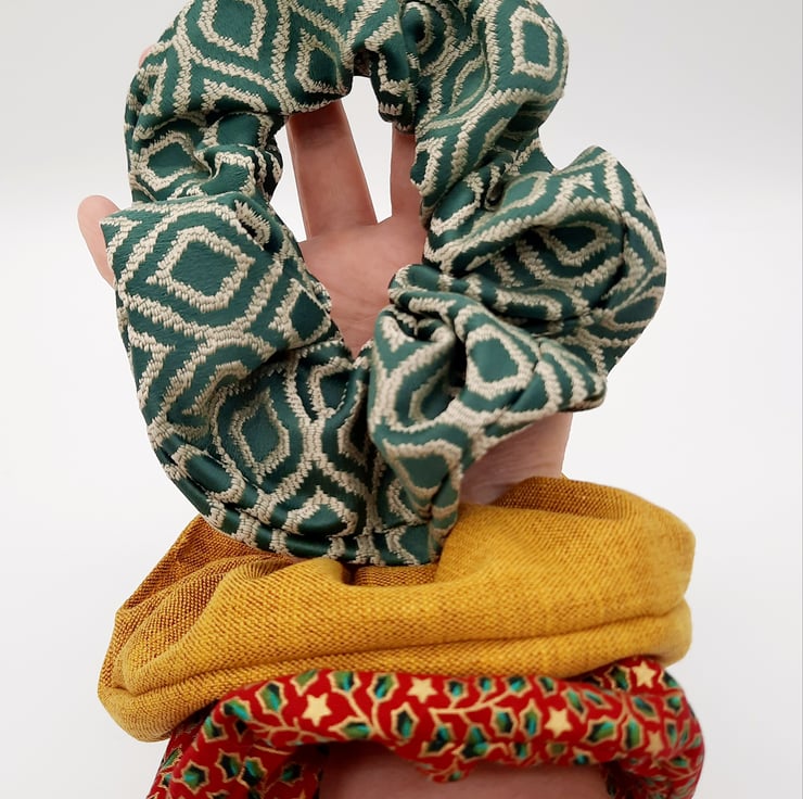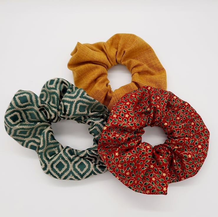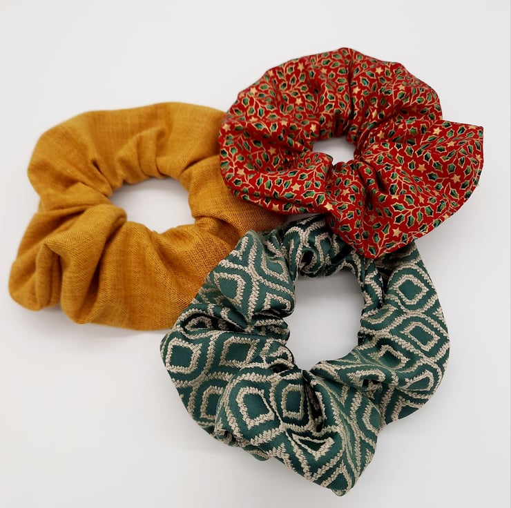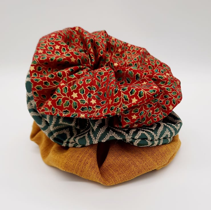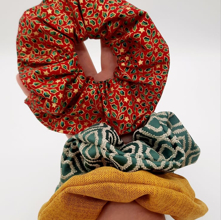 This set has a Christmas theme. The colours include red cotton with green holly and gold stars.