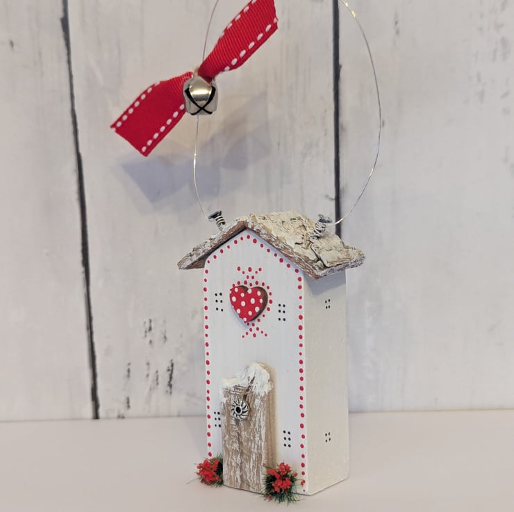 Welcome to Christmas Cottage, a handmade hanging decoration for adding a touch of festive cuteness to your home or would make a beautiful gift.