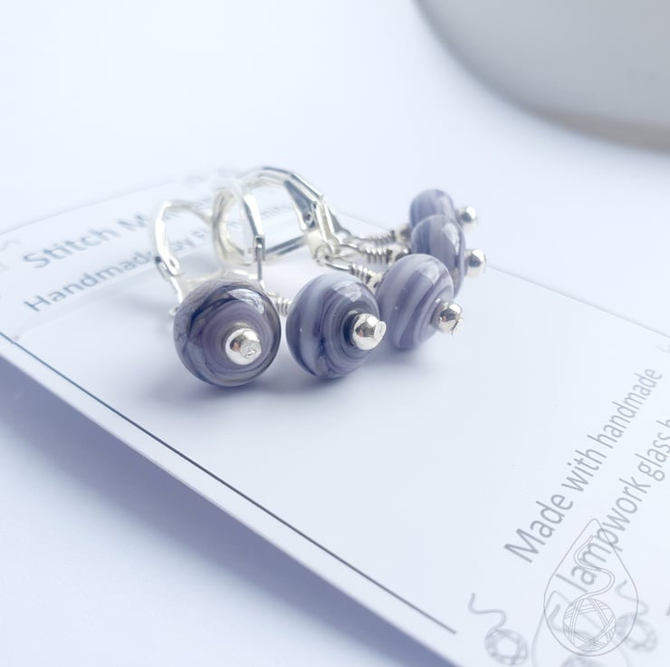 Each bead is individually formed by melting coloured glass rods in a flame. This glass has layer of reactive blues and ivory which form random lines and swirls around each bead. Due of the nature of lampworking, no two beads will ever have exactly the same surface pattern which means each bead truly is unique!