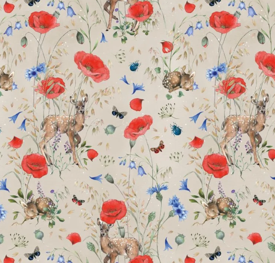 Persephone was the daughter of Ceres and when older she was captured by Hades, the God of the Underworld to be his wife. She spends six months below ground leading to winter and joins her mother in spring for six months leading to spring and summer. Her symbols include poppies and deer so this was the perfect fabric xx