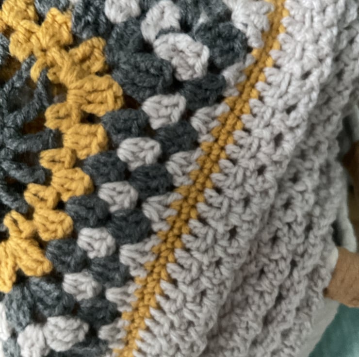 This handmade granny square blanket was created in the same warm, gentle palette as my teddy bear collection.