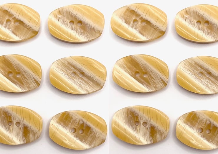 Bag of 12 Oval-Style Buttons, Yellow, 23mm Wide, Carved Stripes Design, Textured
