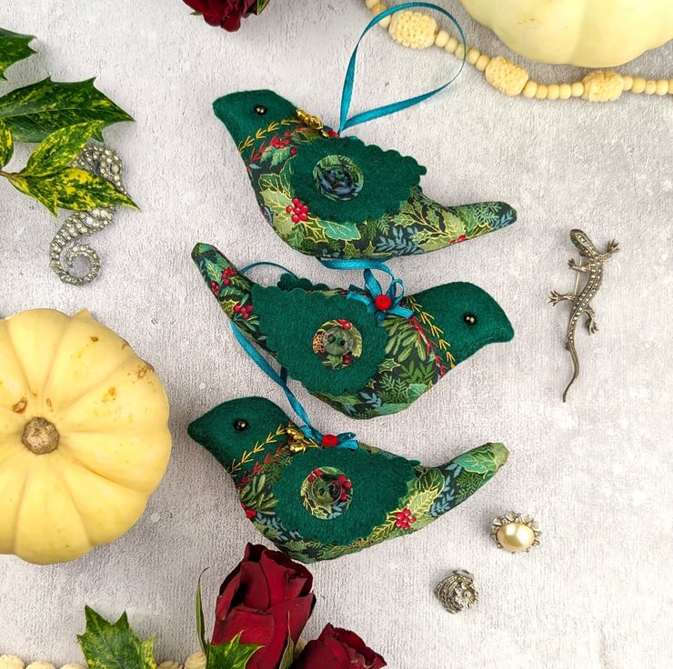 Just little Christmas whimsy, three tiny hanging birds for your tree