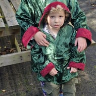 The cuff is from a dark green velour material that is lined with the tartan fabric.