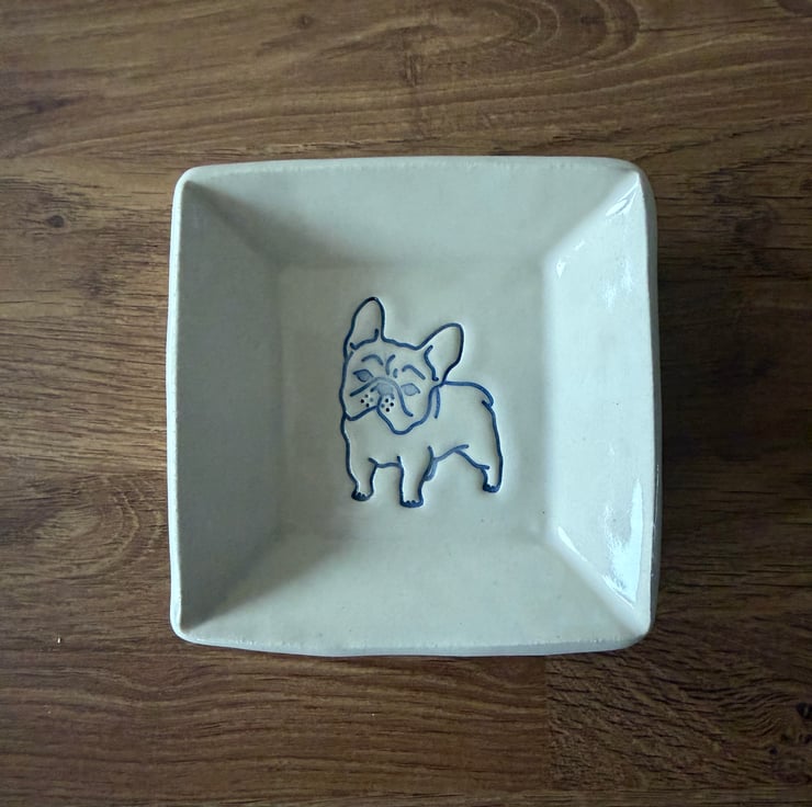 I designed this piece to capture the playful spirit of French Bulldogs in a functional, handmade ceramic dish.