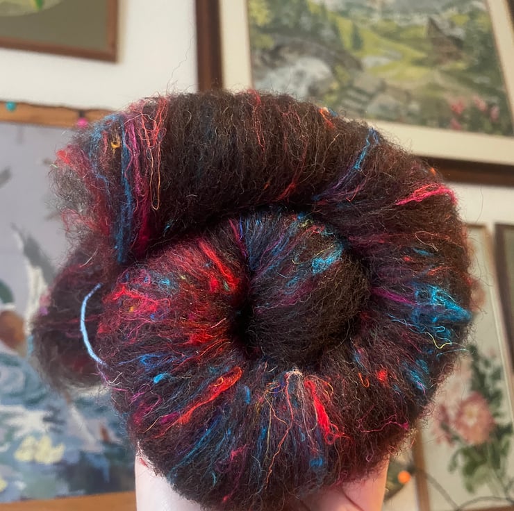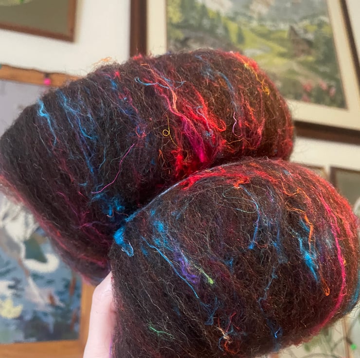 I always dreamed of carding beautiful art batts to spin and felt, I love combining colours that I find pleasing and am over the moon to be able to share these fibre batts with other crafters who don’t perhaps have access to a drum carder or even hand carders.