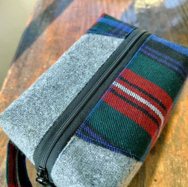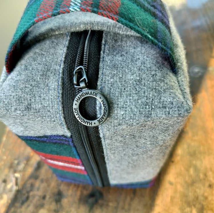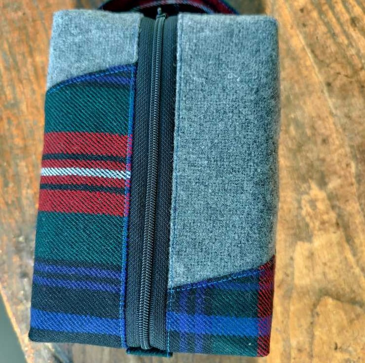 Made with Scottish grey wool tweed and Scottish tartan wool fabric. (outer)