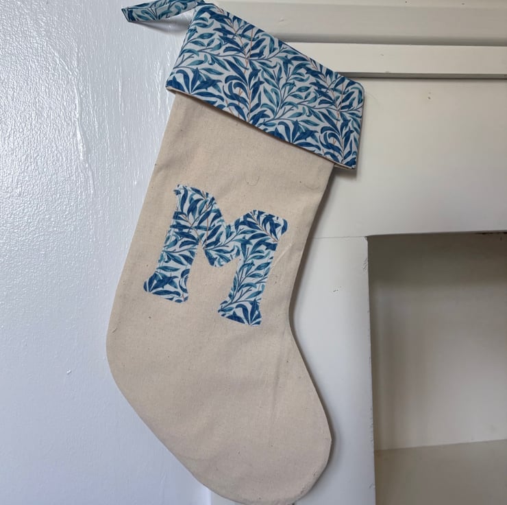 Each stocking is lovingly made in Somerset, featuring a classic Morris design cuff and matching appliqué initial on soft cotton canvas. A perfect size (38cm x 22cm) for filling with little treats, small gifts, and Christmas morning surprises.
