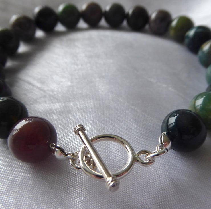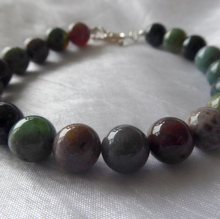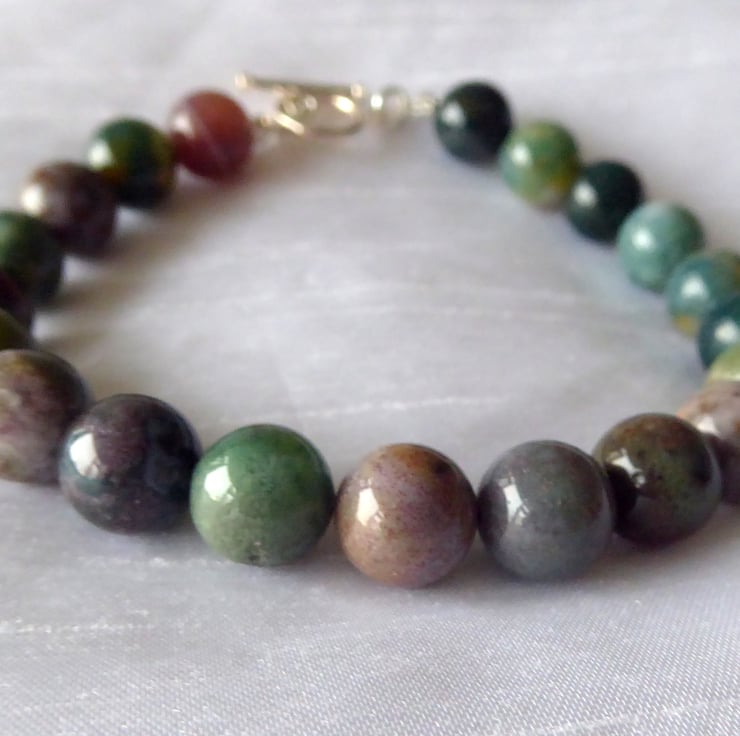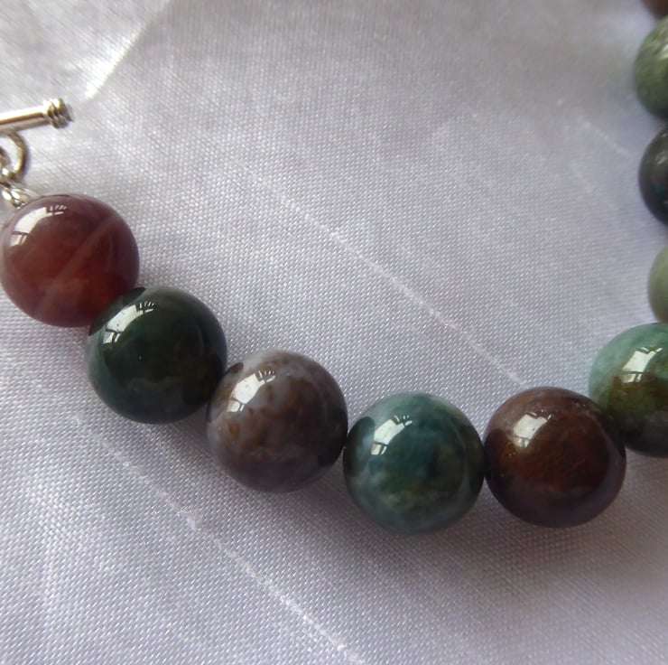 Large 10mm Indian Agate Gemstones Beaded Bracelet