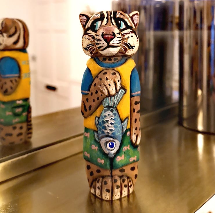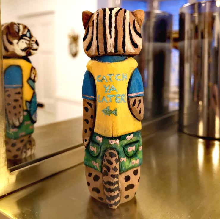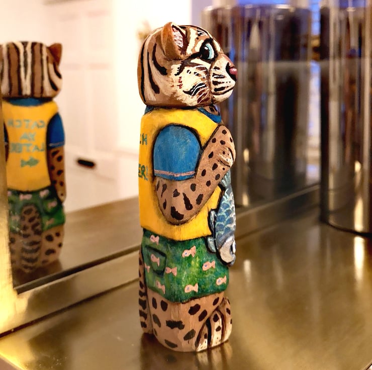 Commissioned with love and carved with care, Finn set out to catch his dinner… but ended up catching feelings. Now he’s torn between his instincts and his empathy, cradling his prize catch and wondering if it’s time to build an aquarium instead.