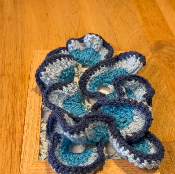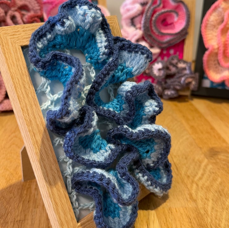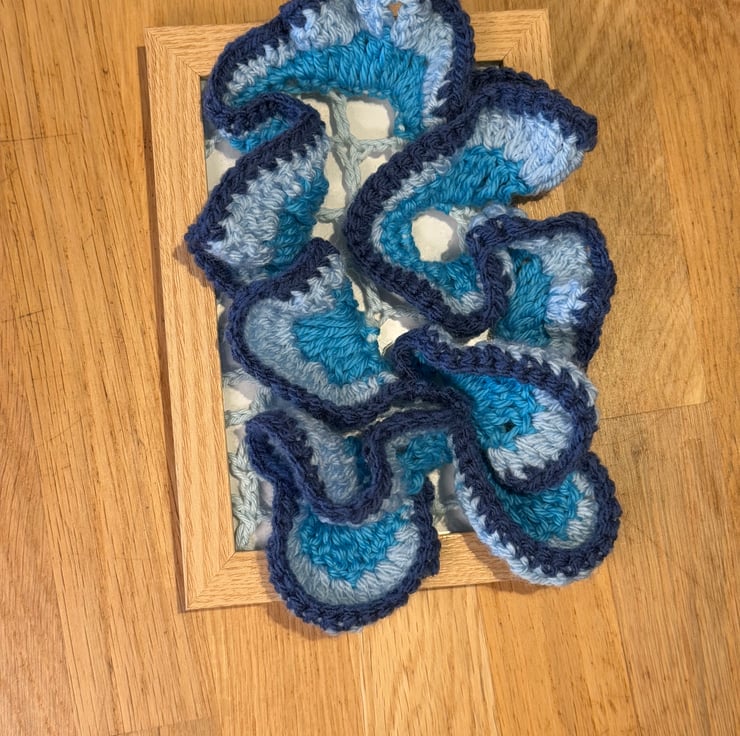 A beautiful blue waved effect piece with 3 shades of blue in a wood effect 17cm x 12cm frame.