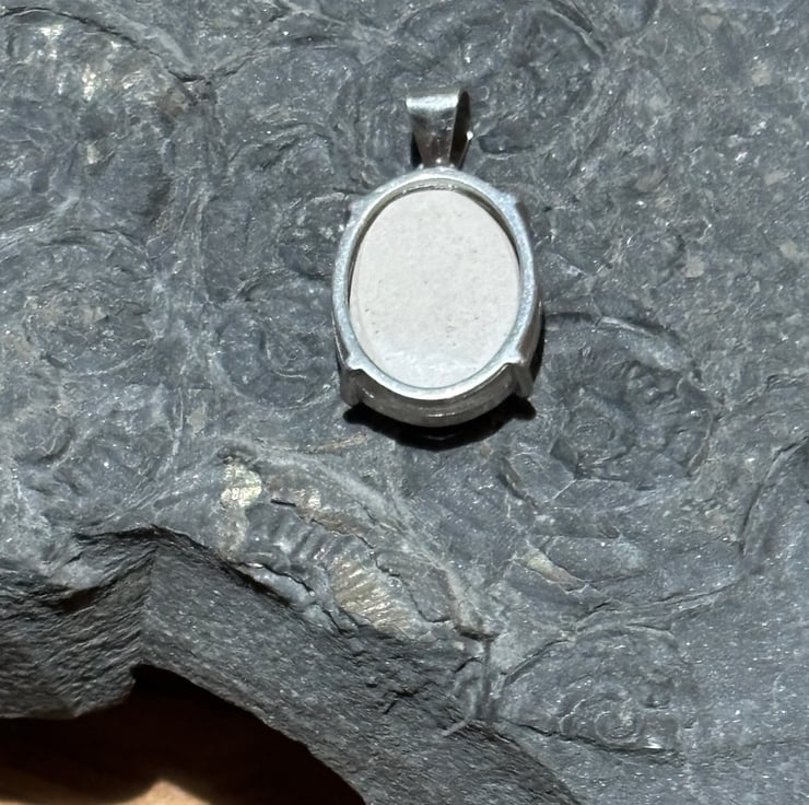 Set in 15mm x 12mm oval recycled silver bezel tray.