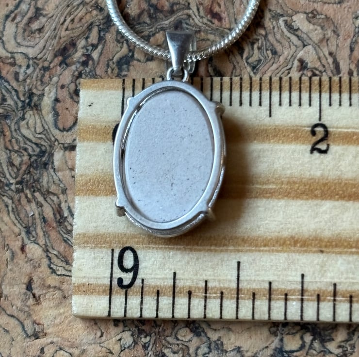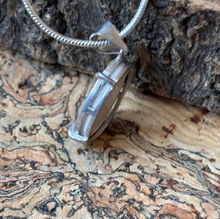 Set in 15mm x 12mm oval recycled silver bezel tray.