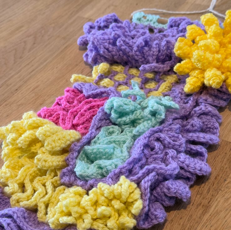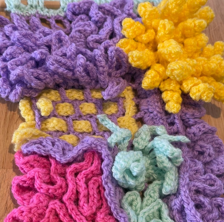 I was inspired to start creating crochet wall hangings because I love the look & feel of 3d art and wanted to try and create something weird and wonderfully unique. All pieces are one offs made my me possibly whilst bing watching a season on tv!