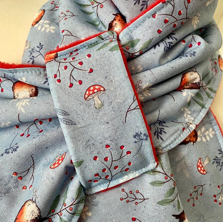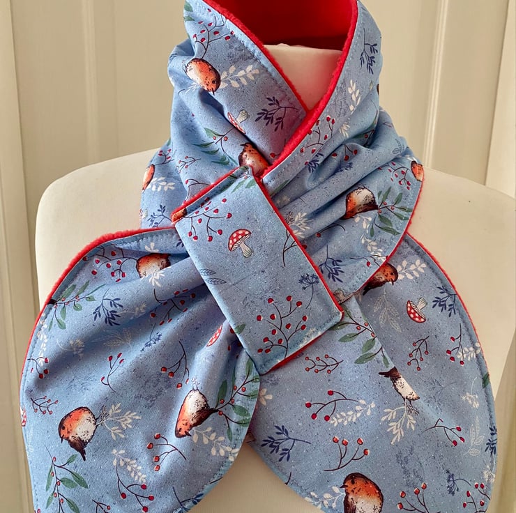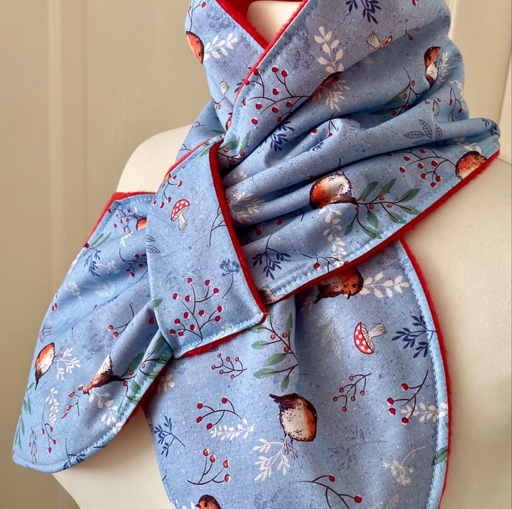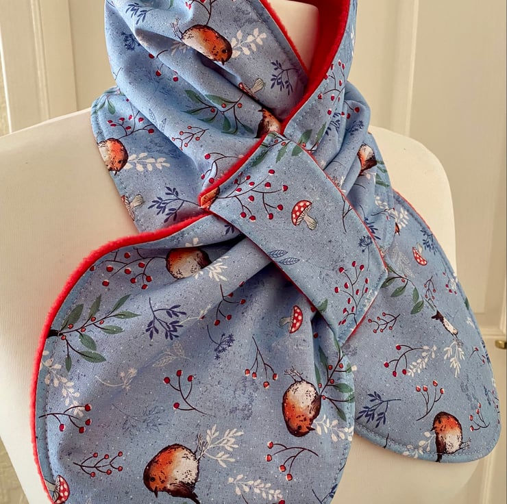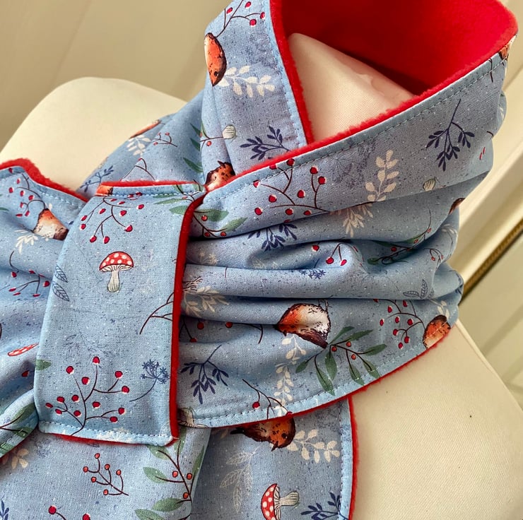 I’ve created this lovely fleece lined neck warmer scarf using a gorgeous 100% cotton print fabric and lined it with a soft warm fleece which compliments the colour of the outer. These are the perfect alternative to traditional scarfs as they are much less bulky but still provide the warmth.