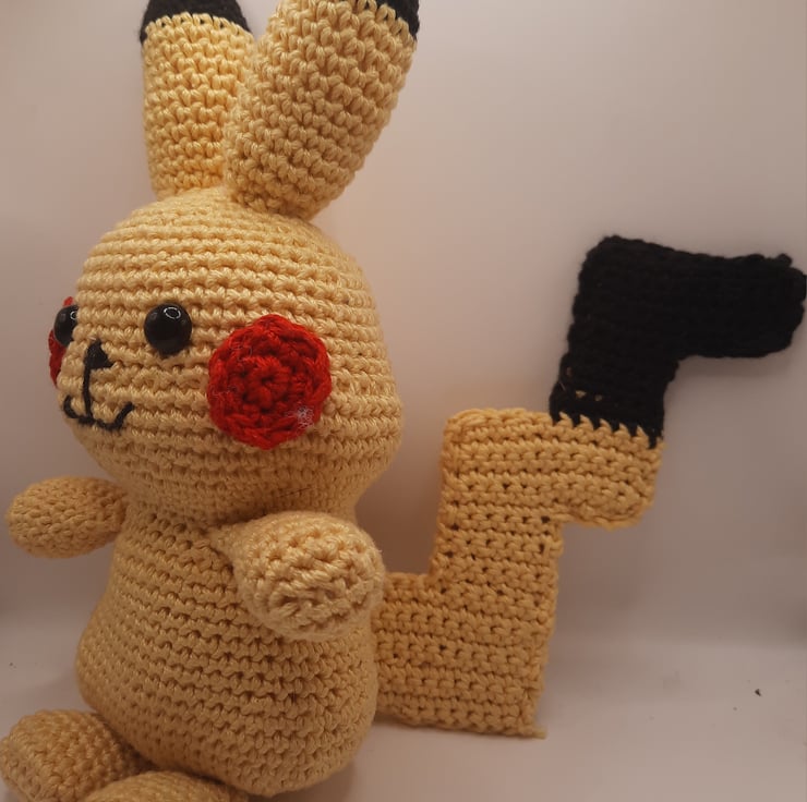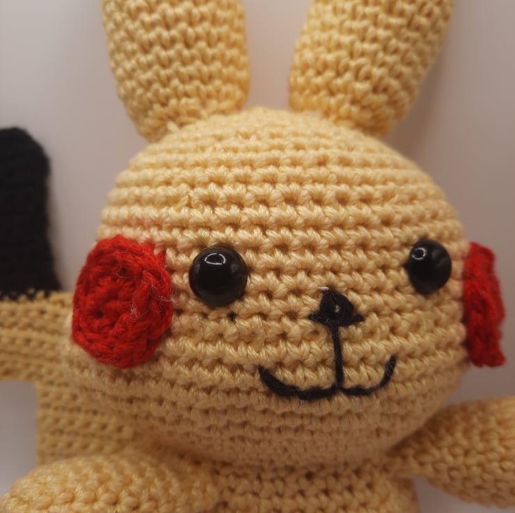Meet my vibrant crochet Pikachu inspired plushie toy, bursting with bright colors to brighten any child's playtime. This adorable Pokémon character, handmade with love, is perfect for cuddles, adventures, and makes an ideal Christmas gift.