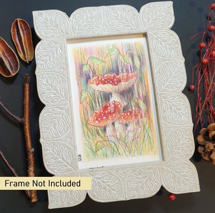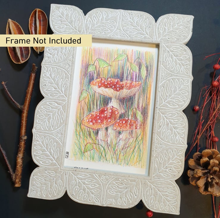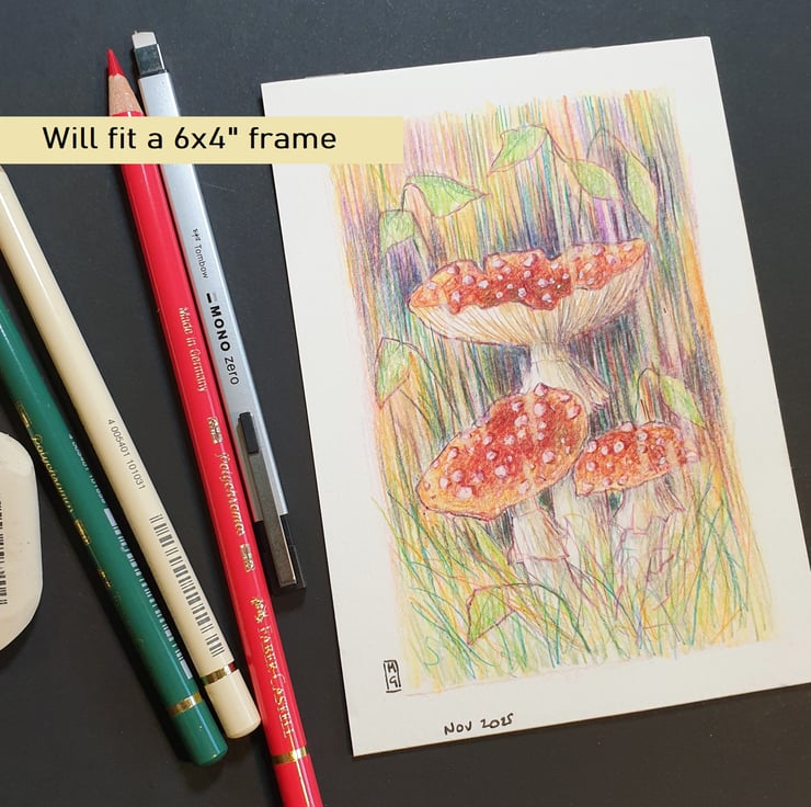 Fly agaric mushrooms, little original artwork, letterbox art gift
