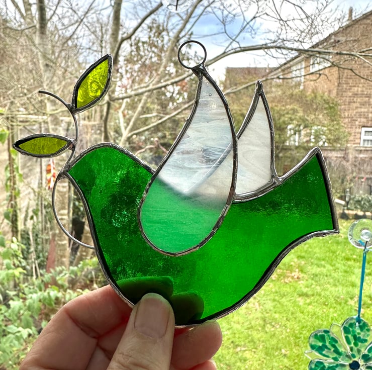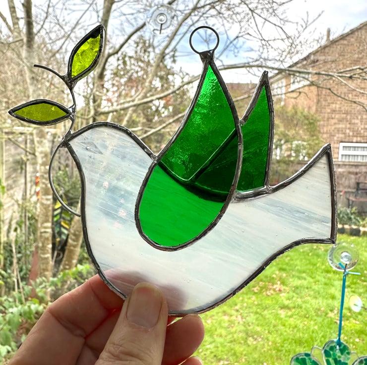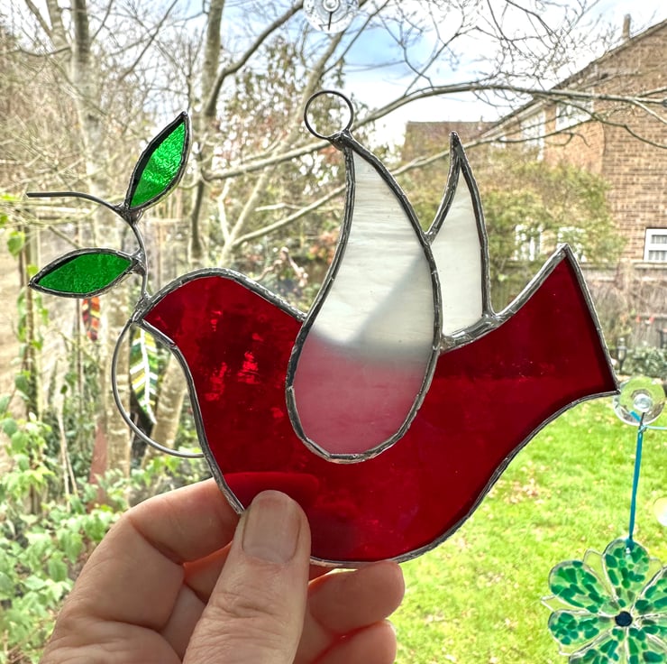 Five suncatcher made in beautiful stained glass by Carole’s Glass