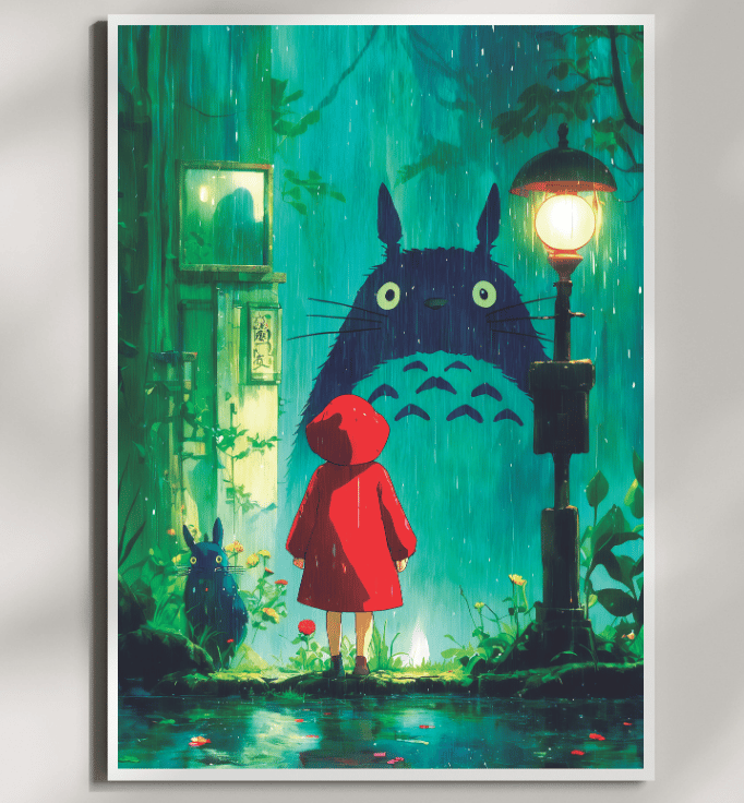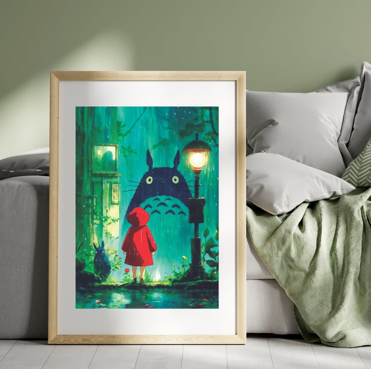 I was inspired by the gentle magic and atmosphere of My Neighbour Totoro. I wanted to create a modern artwork that captures the warmth, whimsy and calm feeling of the film while offering something fresh.