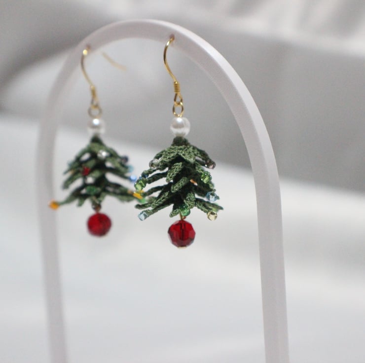 Micro Crochet Christmas Tree Earring, Gift for Christmas, Holiday Accessories, R