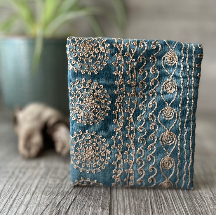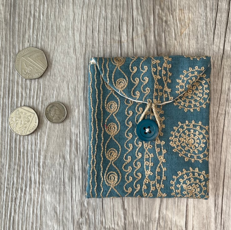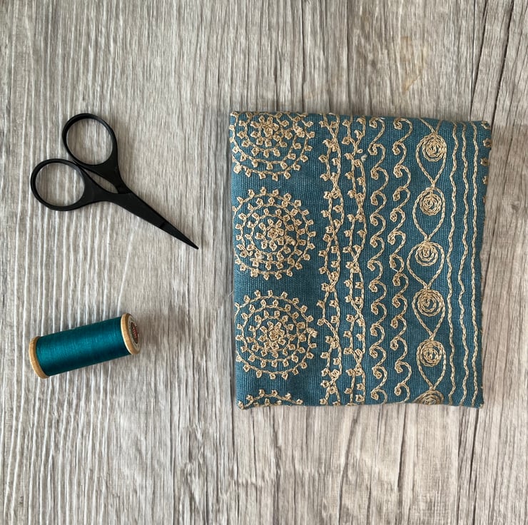 This little pure/pouch is made from a lovely embroidered furnishing fabric featuring circles, swirls and waves. Not only is it pretty to look at, it is also tactile. It would make a perfect gift for a friend or family member.