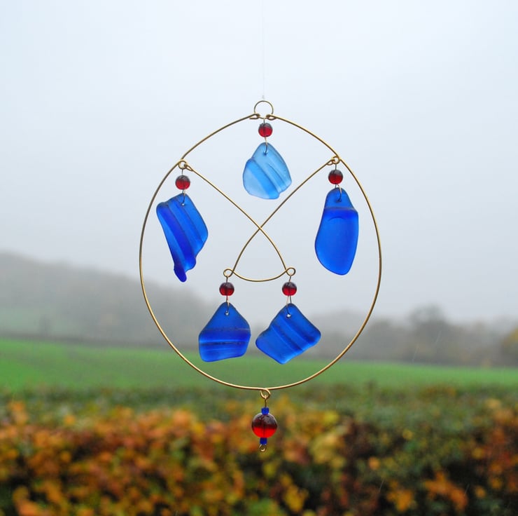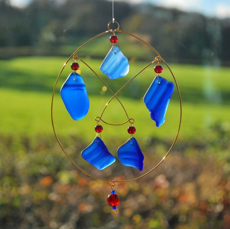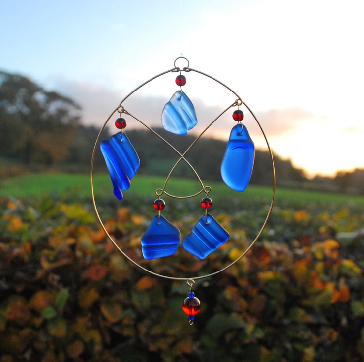 Our sun catchers are individually hand made in Chudleigh, Devon. We collect our materials ourselves, mainly from local beaches. Each piece of glass is unique, so each sun catcher is unique.