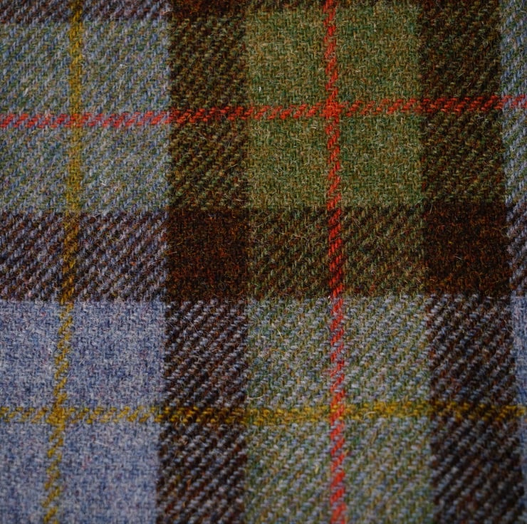 100 percent pure new wool, Harris Tweed or Glenlyon Mill Tweed, woven in Scotland