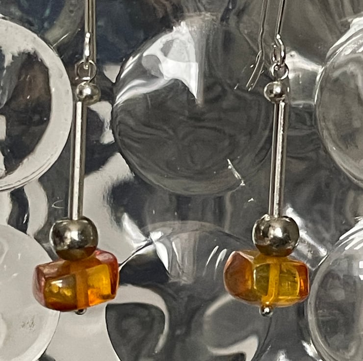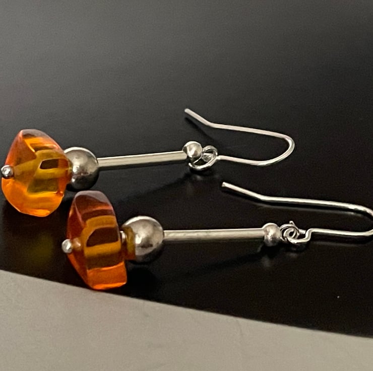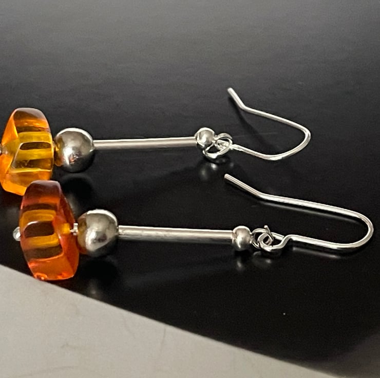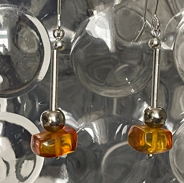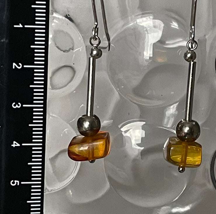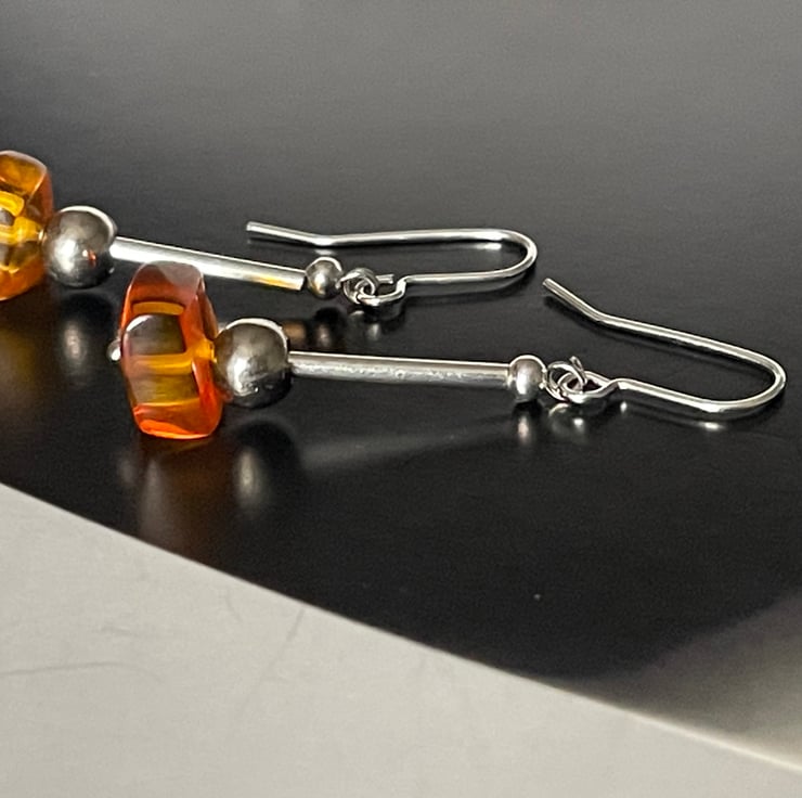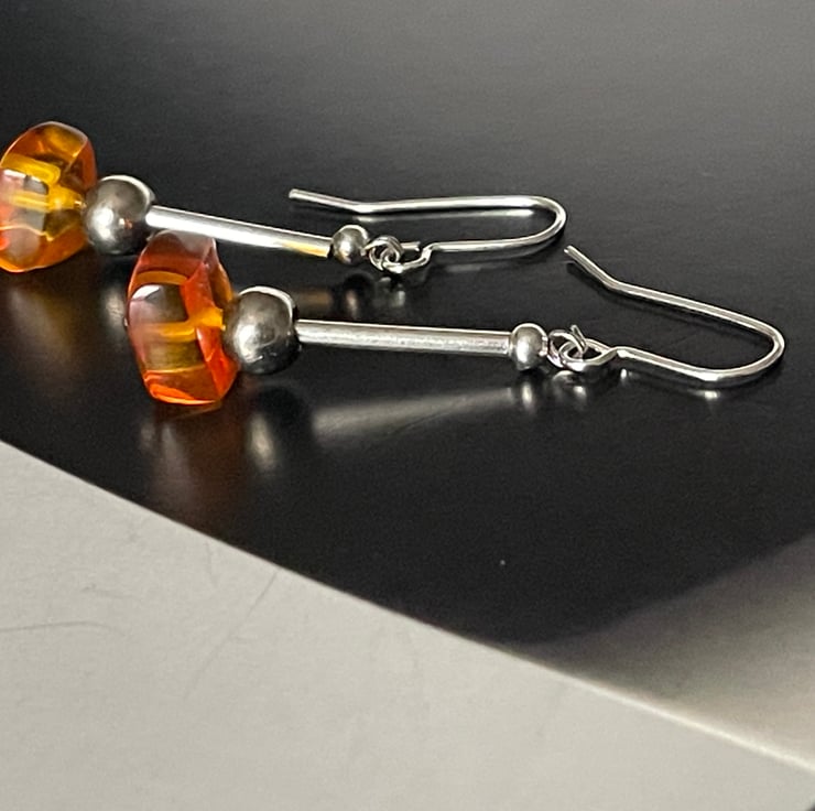 Gorgeous Artisan handmade Baltic honey colour amber and hematite dangling earrings