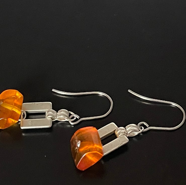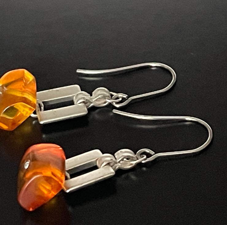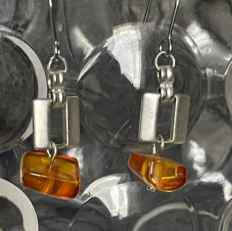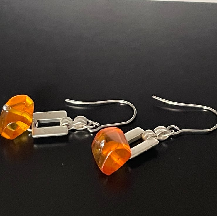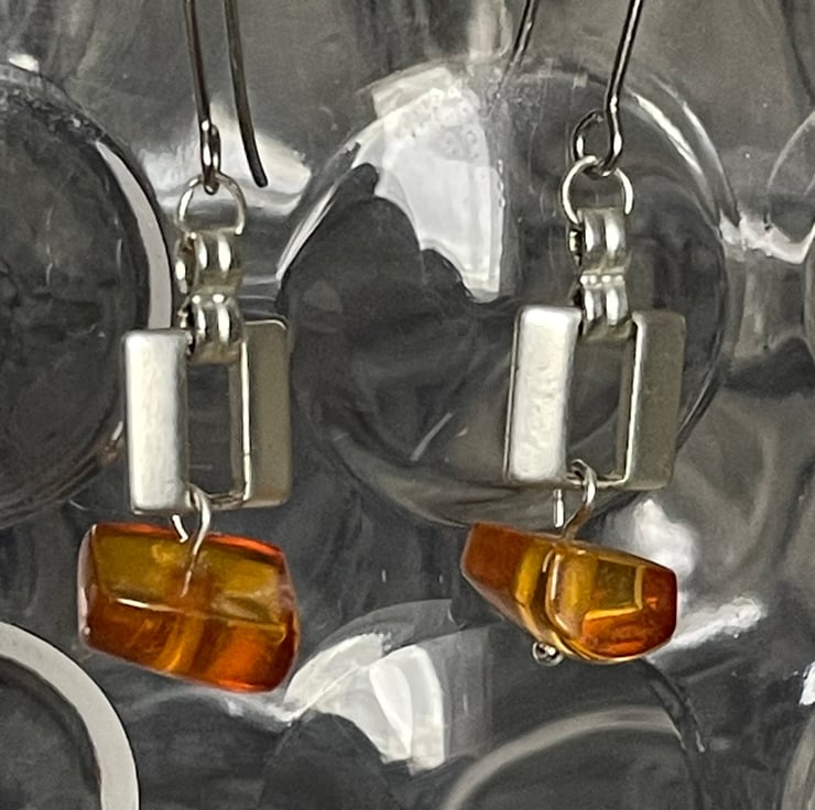 Gorgeous Artisan handmade Baltic honey colour amber dangling earrings