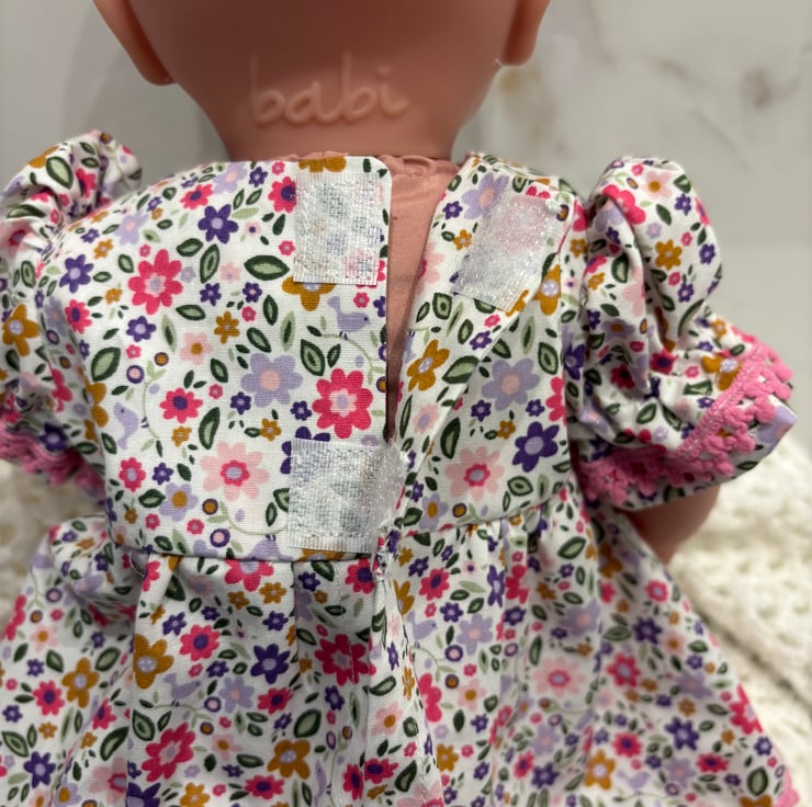 This dress is made for a baby doll approx 14/15” 36/38cm