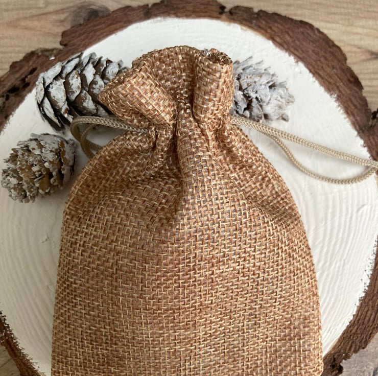 Presented in a natural burlap drawstring pouch and carefully tissue wrapped