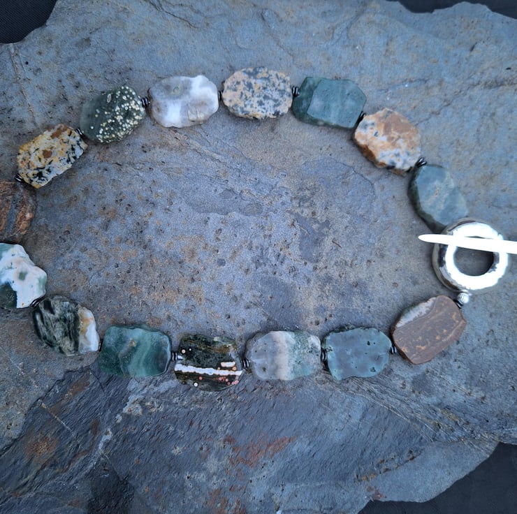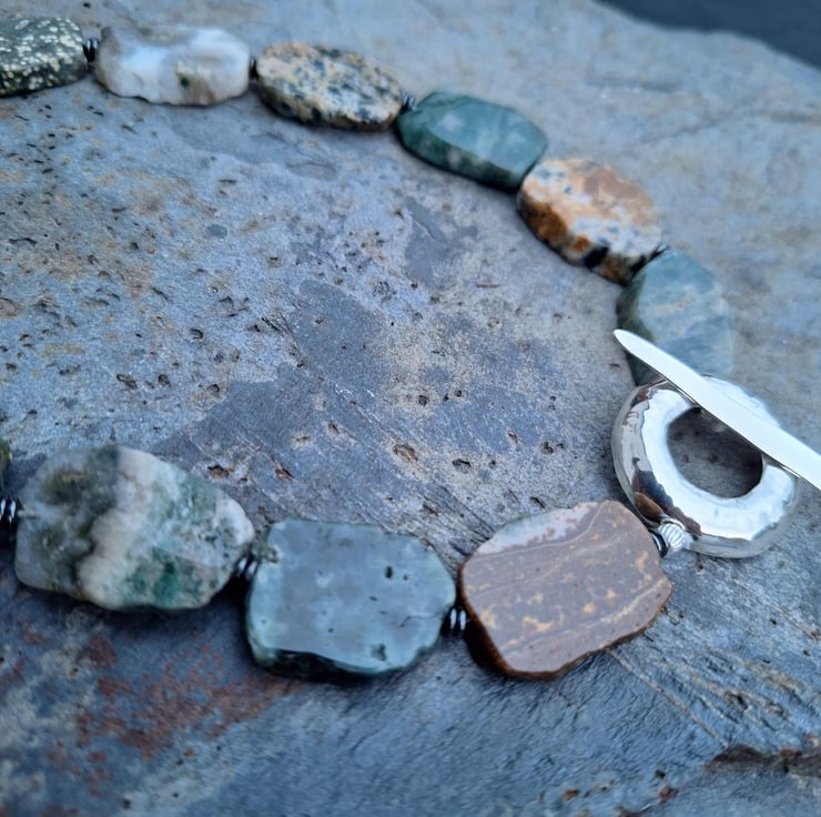 Charming Sea Jasper Choker Necklace. Silver 925 A Serene Touch of the Ocean